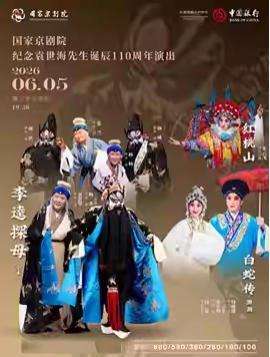 国家京剧院纪念袁世海先生诞辰110周年演出《红桃山》《白蛇传·游湖》《李逵探母》 时间:2026.06.05 周五 19:30 场馆:北京市 | 梅兰芳大剧院-大剧场 票价:100/180/280/380/580/680 微信订票:18515362586 电话订票:010-66552100,010-66552258